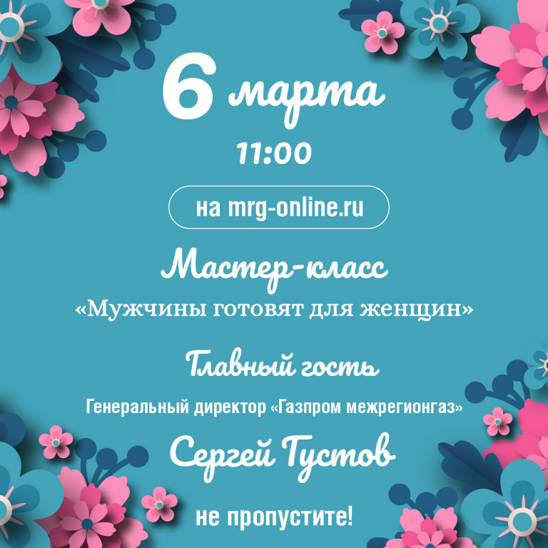 6 марта в 11:00 (мск) состоится кулинарный мастер-класс для всех с участием генерального директора «Газпром межрегионгаз» Сергея Густова.